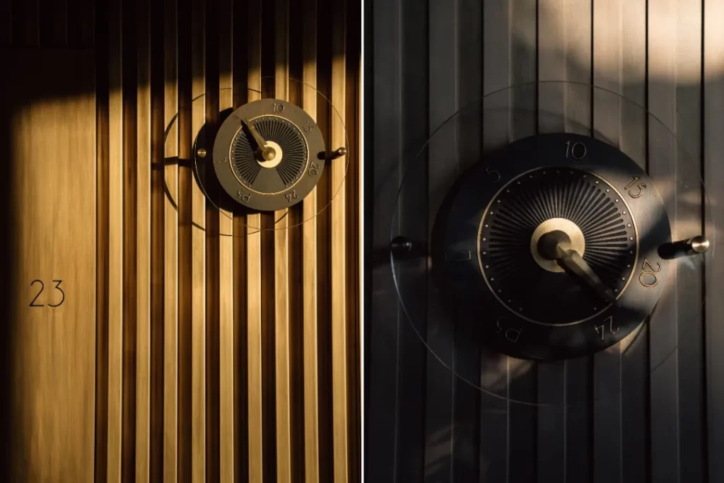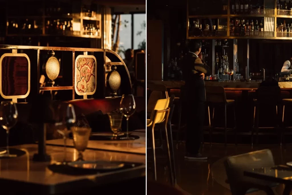 Even the journey by lift to the guestrooms and rooftop becomes an inward act of looking back at Casablanca. In fidelity to the period, the elevators are clad in marble and brass, deliberately free of digital displays. Floor indicators appear as old fashioned dials, their needles advancing with deliberate slowness. When the doors open, a clear chime sounds, carrying the faint echo of glasses touching at a ballroom dance that has already ended. The panoramic elevator on the eastern side preserves a full view of the city. As it ascends, the outlines of Casablanca’s newer quarters gradually unfold, until the whole city reveals itself at the top, distant and hushed. It feels like a final gesture of remembrance, offered to the Casablanca that once believed in modernity, and in a future that now exists only as an idea carefully held.